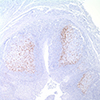 La protéine de mort cellulaire programmée-1 (PD-1) est exprimée à la surface des lymphocytes T, des lymphocytes B et des cellules myéloïdes activés. L'anti-PD-1 est un marqueur du lymphome angioimmunoblastique et laisse croire à l'existence d'une cellule d'origine unique de ce néoplasme. À la différence de CD10 et BCL6, PD-1 est exprimé par peu de lymphocytes B; par conséquent, l'anti-PD-1 pourrait être un marqueur diagnostique plus spécifique et plus utile dans le lymphome angioimmunoblastique. De plus, l'expression de PD-1 indique que le lymphome angioimmunoblastique est un néoplasme issu des lymphocytes T des centres germinatifs. L'expression de PD-1 dans le lymphome angioimmunoblastique corrobore encore davantage ce modèle d'oncogenèse des lymphocytes T dans lequel certains sous-types en particulier de lymphocytes T peuvent subir une transformation néoplasique et et constituer différents sous-types histologiques, immunophénotypiques et cliniques de néoplasies à cellules T.