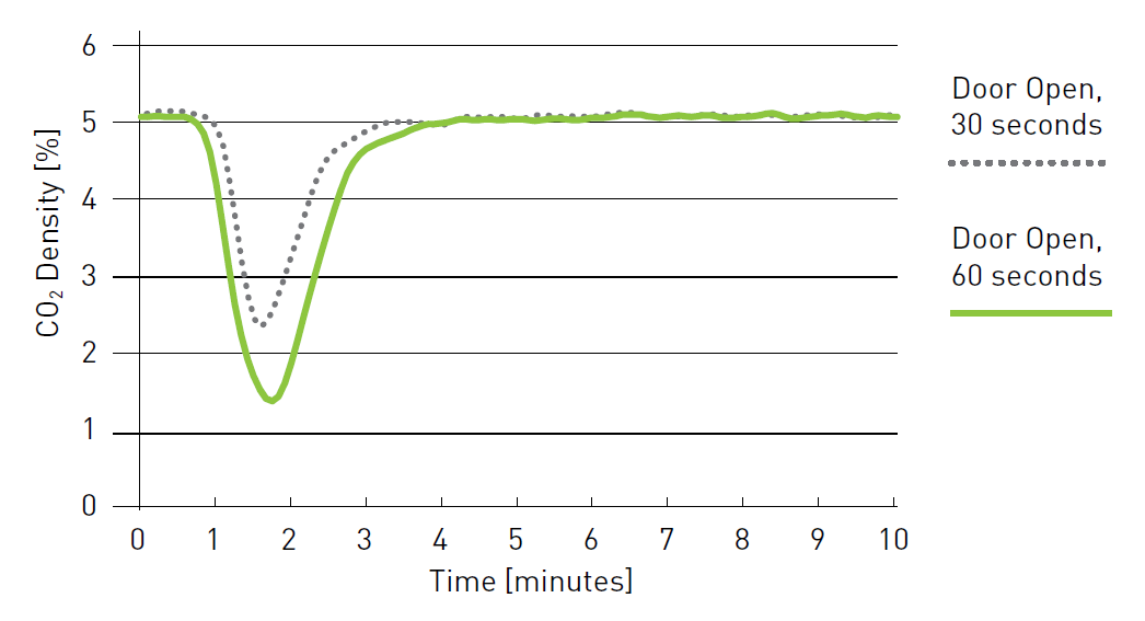 Le capteur IR atteint une récupération de CO2 ultrarapide sans dépassement, même après plusieurs ouvertures de porte.